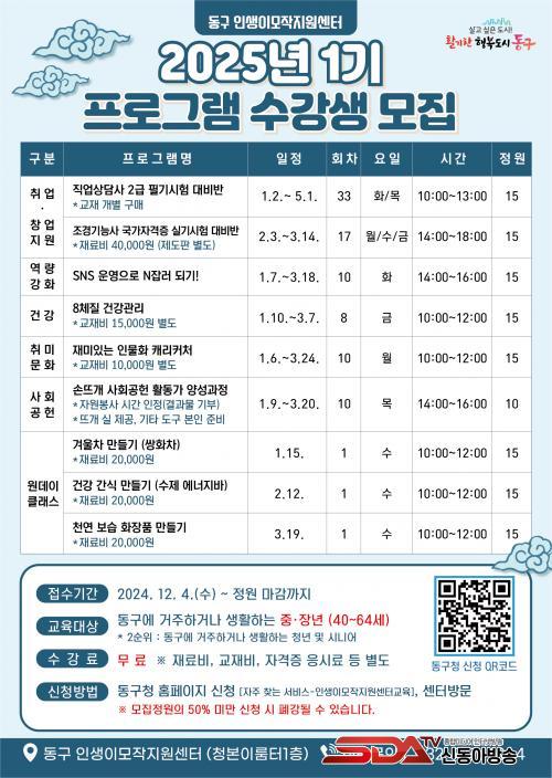 ÀÎõ µ¿±¸ ÀλýÀ̸ðÀÛÁö¿ø¼¾ÅÍ, 2025³â 1±â ÇÁ·Î±×·¥ ¼ö°­»ý ¸ðÁý