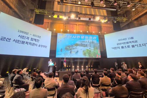 À̹ø °³°ü½ÄÀº ¿À·£ ±â°£ ¹æÄ¡µÇ¾ú´ø ±º»ê½Ã¹Î¹®È­È¸°üÀÌ ½Ã¹Î Âü¿©Çü ¹®È­¿¹¼ú°ø°£À¸·Î »õ·Ó°Ô ž °ÍÀ» ±â³äÇϸç, Áö¿ª Áֹΰú Çà¾È¾ÈÀüºÎ ±è¹ÎÀç Â÷°üº¸¸¦ ºñ·ÔÇÑ °ü°èÀÚµéÀÌ ÇÔ²² ÃàÇÏÇÏ´Â ÀÚ¸®·Î ¸¶·ÃµÆ´Ù.
