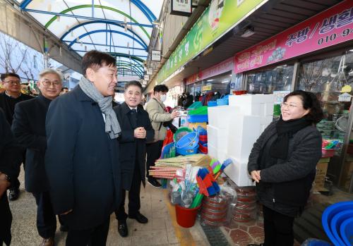 À̹ø ¹æ¹®Àº °æÁ¦ ħü »óȲ¿¡¼ ÀüÅë½ÃÀå Ȱ¼ºÈ¸¦ À§ÇÑ ´ëÃ¥À» Á¡°ËÇÏ°í µµ¹ÎµéÀÇ ¸ñ¼Ò¸®¸¦ Á÷Á¢ µè±â À§ÇØ ¸¶·ÃµÆ´Ù. ±èÁ¦ÀüÅë½ÃÀå ¿ÀÀÎÁ¾ »óÀÎȸÀåÀ» ºñ·ÔÇÑ »óÀÎ ´ëÇ¥µéÀÌ Âü¼®ÇÑ °£´ãȸ¿¡¼´Â ½ÃÀå ³» ÁÖ¿ä Çö¾È°ú Áö¿ø ¹æ¾ÈÀÌ ³íÀǵƴÙ.