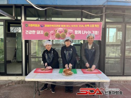 Çà»ç¿¡¼´Â ±¸·ÊÃàÇù¿¡¼ Á¦°øÇÑ ½Å¼±Çϰí ǰÁú ÁÁÀº µÅÁö°í±â¸¦ ÀÌ¿ëÇÏ¿© ¼öÀ° ¿ä¸®¸¦ ÁغñÇØ, ÀÌ¿ëÀå¾ÖÀε鿡°Ô ¸ÀÀÖ°í ¸Ô±â ½¬¿î Á¡½ÉÀ» Á¦°øÇÏ¿´½À´Ï´Ù. ¸¹Àº ÀÌ¿ëÀå¾ÖÀεéÀÌ µÅÁö°í±â ¿ä¸®¸¦ Áñ±â¸ç, ÇູÇÑ ½Ã°£À» º¸³ÂÀ¸¸ç, À̸¦ ÅëÇØ µÅÁö°í±â ¼Òºñ ÃËÁø»Ó¸¸ ¾Æ´Ï¶ó Áö¿ª ³ó°¡ÀÇ ¾î·Á¿òÀ» µ½°í, Áö¿ª °æÁ¦ Ȱ¼ºÈ¿¡µµ ±â¿©ÇÏ´Â ÀǹÌÀÖ´Â ½Ã°£À̾ú½À´Ï´Ù.