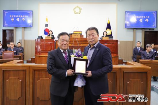 ÇÑÆí Á¦3Â÷ º»È¸ÀÇ¿¡ ¾Õ¼ °æ³²½Ã․±ºÀÇȸÀÇÀåÇùÀÇȸ¿¡¼ ¼ö¿©ÇÏ´Â °æ»ó³²µµÀÇÁ¤ºÀ»ç»ó(¹®¼®ÁÖ ÀÇ¿ø) ǥâÆÐ¸¦ Àü¼öÇÏ¿´´Ù. À̾î ÇԾȱºÀÇȸ´Â ÇàÁ¤»ç¹«°¨»ç ¼ö°¨ ¸ð¹üºÎ¼(»ê¸²³ìÁö°ú, ÇÔ¾ÈÁö¹æ°ø»ç), Àû±ØÇàÁ¤ ¿ì¼ö °ø¹«¿ø(À¯¿øÁÖ º¹ÁöÁ¤Ã¥°úÀå, ¹ÎÂù½Ä »óÇϼöµµ»ç¾÷¼Ò Á¤¼ö´ã´ç), ÀÇÁ¤¹ßÀü À¯°ø °ø¹«¿ø(ÀÇȸ»ç¹«°ú Á¶¿ëÇö Á¤Ã¥Áö¿ø°ü)¿¡ ´ëÇÑ Ç¥Ã¢À» ¼ö¿©ÇÏ°í °Ý·ÁÇß´Ù.