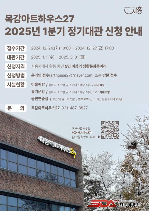 ÇÑÆí, ¸ñ°¨¾ÆÆ®ÇϿ콺27¿¡¼´Â ½ÃÈï½Ã °ü³» ´Ù¾çÇÑ »ýȰ¹®Èµ¿¾Æ¸®ÀÇ È°µ¿ Áö¿ø°ú Âü¿© ±âȸ¸¦ È®´ëÇϰíÀÚ ¸Å³â ºÐ±âº°·Î Á¤±â´ë°ü°ú ¼ö½Ã´ë°ü ¸ðÁýÀ» ÅëÇØ ½Ã¼³À» ¿î¿µÇϰí ÀÖ´Ù.