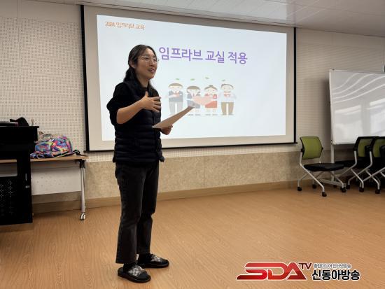 ¿¬¼ö¿¡ Âü°¡ÇÑ ÇÑ ±³»ç´Â 1Â÷ ¿¬¼ö¿¡¼ ¹è¿î ÀÓÇÁ¶óºê¸¦ Çб³¿¡¼ Ȱ¿ëÇÑ °æÇèÀ» °øÀ¯ÇÏ¸ç ¡°Àü±³»ý°ú ÇÔ²² Ȱµ¿ÇÑ °á°ú ÇлýµéÀÇ ÀÚ±âÇ¥Çö ´É·ÂÀÌ ´«¿¡ ¶ç°Ô Çâ»óµÆ°í, ¼·ÎÀÇ ÀǰßÀ» °æÃ»Çϰí Á¸ÁßÇÏ´Â ºÐÀ§±â°¡ Á¶¼ºµÆ´Ù. ¶ÇÇÑ ÇлýµéÀÌ À¯¿¬ÇÏ°Ô »ç°íÇÏ¸ç ¹è·Á½ÉÀÌ ±í¾îÁ® ÇÔ²² ¿ô´Â ½Ã°£ÀÌ ´Ã¾î³µ´Ù¡±°í ¹àÇû´Ù.
