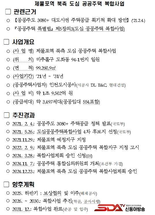 Á¦¹°Æ÷¿ª ºÏÃø µµ½É °ø°øÁÖÅà º¹ÇÕ»ç¾÷Àº 2022³â 2¿ù 9ÀÏ º¹ÇÕÁö±¸·Î ÁöÁ¤µÆÀ¸¸ç, 2024³â 3¿ù ÀÎõµµ½Ã°ø»ç(iH)°¡ º¹ÇÕ»ç¾÷°èȹ ½ÂÀÎ ½Åû¼¸¦ Á¦ÃâÇÑ ÀÌÈÄ 11¿ù¿¡ ÀÎõ½Ã °ø°øÁÖÅà ÅëÇÕ½ÉÀÇÀ§¿øÈ¸ ½ÉÀǸ¦ °ÅÃÆ´Ù. À̹ø ½ÂÀΡ¤°í½Ã¸¦ ÅëÇØ »ç¾÷ÀÌ º»°ÝȵȴÙ.