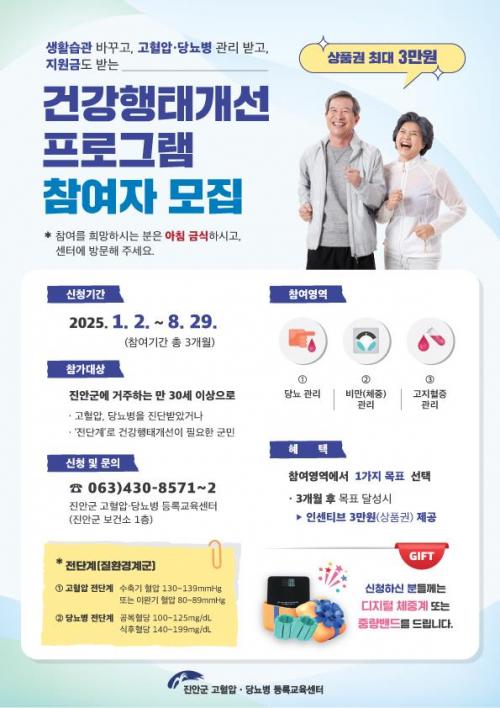ÀÚ¼¼ÇÑ »çÇ×Àº Áø¾È±º °íÇ÷¾Ð¡¤´ç´¢º´ µî·Ï¡¤±³À°¼¾ÅÍ (063-430-8571~2)·Î ¹®ÀÇÇÏ¸é µÈ´Ù.