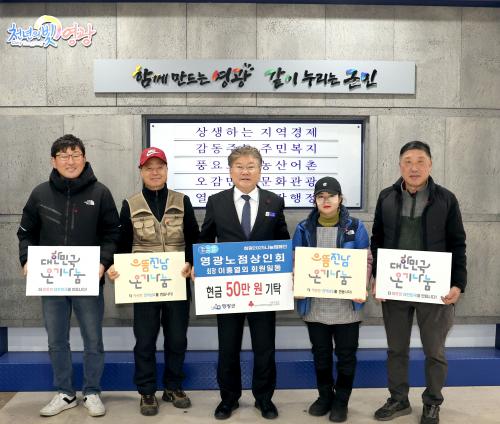 ¿µ±¤³ëÁ¡»óÀÎȸ´Â ¿µ±¤ Å͹̳Π±Ùó¸¦ Áß½ÉÀ¸·Î ³ëÁ¡À» ¿î¿µÇÏ´Â »óÀεéÀÇ ¸ðÀÓÀ¸·Î ȸ¿øµé °£ÀÇ Á¤º¸±³·ù ¹× ±ÇÀͽÅÀåÀ» À§ÇØ °á¼ºµÇ¾úÀ¸¸ç, À̹ø¿¡ ±âŹÇÑ ¼º±ÝÀº Áö¿ªÀÇ ¾î·Á¿î ÀÌ¿ô¿¡°Ô ÀÛÀ¸³ª¸¶ º¸ÅÆÀÌ µÇ°íÀÚ Çϴ ȸ¿øµéÀÇ µû¶æÇÑ ¸¶À½À» ¸ð¾Æ ¸¶·ÃÇÑ °ÍÀÌ´Ù.