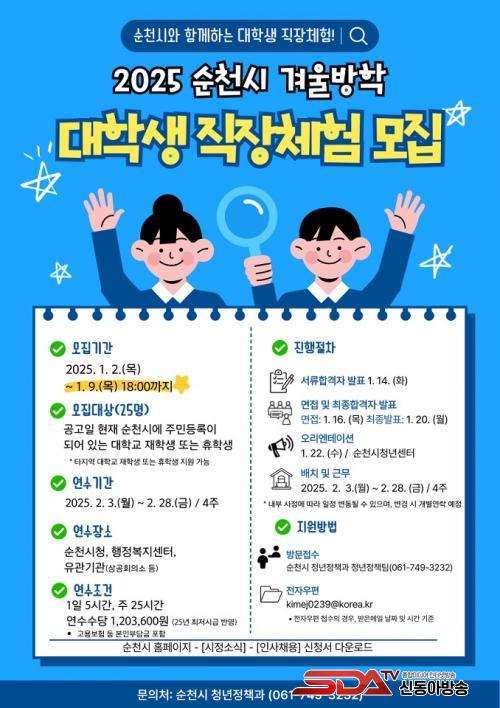 ÃÖÁ¾ÇÕ°ÝÀÚ´Â ¼øÃµ½Ãû°ú ÇàÁ¤º¹Áö¼¾ÅÍ, »çÀü¿¡ ½ÅûÇÑ À¯°ü±â°ü¿¡ ¹èÄ¡µÇ¾î 2025³â 2¿ù 3ÀϺÎÅÍ 2¿ù 28ÀϱîÁö 4ÁÖ µ¿¾È ÇÏ·ç 5½Ã°£¾¿ ±Ù¹«ÇÏ°Ô µÈ´Ù.