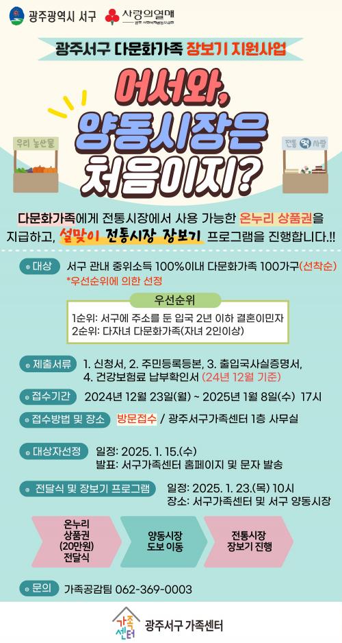 Âü¿©¸¦ Èñ¸ÁÇÏ´Â °¡±¸´Â ¿À´Â 1¿ù 8ÀϱîÁö ±¤ÁÖ¼±¸°¡Á·¼¾ÅÍ(062-369-0072)¿¡ ¹æ¹®ÇØ Áֹεî·Ïµîº»°ú °Ç°º¸Çè·á ³³ÀÔÁõ¸í¼¸¦ Á¦ÃâÇÏ¸é µÈ´Ù.