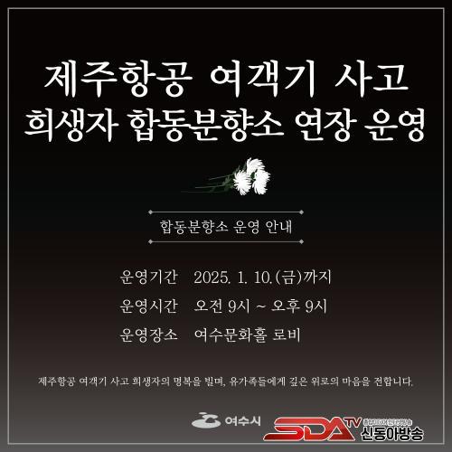 ¿©¼ö½Ã, Á¦ÁÖÇ×°ø ¿©°´±â »ç°í Èñ»ýÀÚ ÇÕµ¿ºÐÇâ¼Ò ¿¬Àå ¿î¿µ