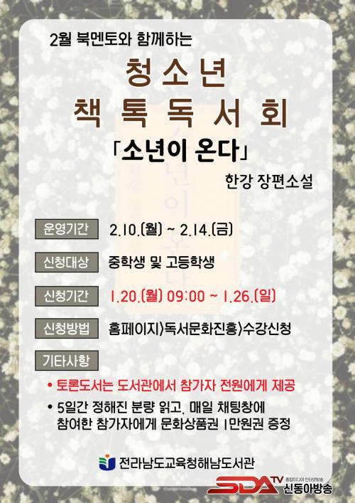 û¼Ò³â Ã¥Ååµ¶¼È¸´Â Áß¡¤°íµîÇлýµéÀ» ´ë»óÀ¸·Î ¿î¿µµÇ¸ç, ÇѰ ÀÛ°¡ÀÇ ³ëº§¹®ÇлóÀ» ±â³äÇÏ°í ¿ì¸® Áö¿ªÀ» ¹è°æÀ¸·Î ÇÏ¿© ´õ¿í Àǹ̰¡ ±íÀº <¼Ò³âÀÌ ¿Â´Ù>¸¦ ÁÖÁ¦µµ¼·Î ¼±Á¤ÇÏ¿´´Ù. ºÏ¸àÅäÀÇ Áöµµ¿¡ µû¶ó À̸¦ ÇÔ²² Àаí īī¿ÀÅå ¿ÀÇ äÆÃ¹æÀ» ÅëÇØ Âü°¡ÀÚµéÀÌ ÀǰßÀ» ÁÖ°í¹ÞÀ¸¸ç µ¶¼°æÇèÀ» °øÀ¯ÇÑ´Ù.