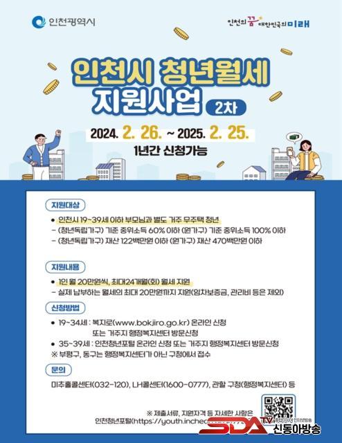 ½ÅûÀº ¡®º¹Áö·Î¡¯(19~34¼¼)¿Í ¡®ÀÎõû³âÆ÷ÅС¯(35~39¼¼)¿¡¼ ¿Â¶óÀÎÀ¸·Î °¡´ÉÇϸç, °üÇÒ ÇàÁ¤º¹Áö¼¾ÅÍ(µ¿±¸¿Í ºÎÆò±¸´Â ±¸Ã») ¹æ¹® ½Åûµµ °¡´ÉÇÏ´Ù. ÀÚ¼¼ÇÑ ³»¿ëÀº ÀÎõû³âÆ÷ÅÐ(https://youth.incheon.go.kr)¿¡¼ È®ÀÎÇÒ ¼ö ÀÖ´Ù.