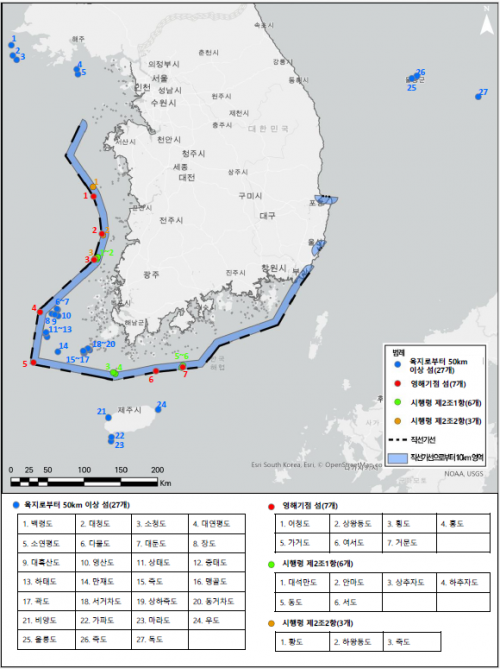 ¸Õ¼¶ Ưº°¹ýÀº ±¹Åä Ãֿܰû¿¡ À§Ä¡ÇØ Áö¸®ÀûÀ¸·Î³ª ¿ª»çÀû Ư¼ö¼ºÀÌ ÀÖ°í, ±¹°æ¼öºñ´ë ¿ªÇÒÀ» ÇÏ´Â ±¹Åä¿Ü°û ¸Õ¼¶ÀÇ ¾ÈÀüÇÑ Á¤ÁÖȯ°æ Á¶¼º, »ýȰ±â¹Ý½Ã¼³ Á¤ºñ¿Í È®Ãæ µî ÇÊ¿äÇÑ »çÇ×À» ±ÔÁ¤Çϰí, ÁֹΠ»ýȰ ¾ÈÁ¤°ú »îÀÇ Áú Çâ»óÀ» À§ÇÑ Áö¿ø ±Ù°Å¸¦ ¸¶·ÃÇß´Ù. Àü±¹ 43°³ Áß Àü³²Àº 25°³ ¼¶ÀÌ ÇØ´çµÈ´Ù. ½Ã±ºº°·Î ¿©¼ö 3, ¿µ±¤ 4, ¿Ïµµ 1, Áøµµ 6, ½Å¾È 11°÷ÀÌ´Ù.