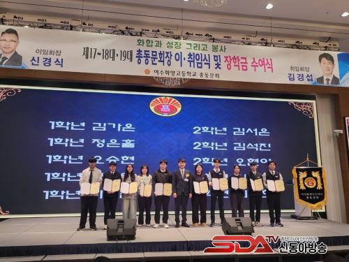 ÀÌ¿¡ ´ëÇØ ¿©¼öȾç°íµîÇб³ ±èÀçö±³ÀåÀº¡°"Ãѵ¿¹®È¸Àå´ÔÀÇ µû¶æÇÑ ¼±ÇàÀº Çб³ °øµ¿Ã¼ ¸ðµÎ¿¡°Ô Å« °¨µ¿À» ÁÖ°í ÀÖ´Ù.¡±¸ç, ¡°ÀåÇбÝÀ» Áö¿ø¹ÞÀº ÇлýµéÀÌ À̸¦ °è±â·Î Çо÷¿¡ ´õ¿í ¸ÅÁøÇÏ¿© ÀڽŵéÀÇ ²ÞÀ» ÀÌ·ç±æ ¹Ù¶õ´Ù.¡±°í °¨»çÀÇ ¶æÀ» ÀüÇß´Ù.