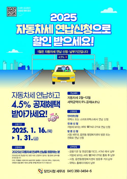 1¿ù¿¡ ¿¬°£ ÀÚµ¿Â÷¼¼¸¦ ¹Ì¸® ³³ºÎÇϸé 1¿ùºÐÀ» Á¦¿ÜÇÑ 2¿ùºÎÅÍ 12¿ùºÐ±îÁöÀÇ ÀÚµ¿Â÷¼¼ÀÇ 5%¸¦ °øÁ¦ÇØÁØ´Ù. ½Ã´Â 2025³âºÎÅÍ 3%·Î ÇÏÇâ Á¶Á¤µÉ ¿¹Á¤À̾ú´ø ºñÀ²À» ÀÛ³â°ú µ¿ÀÏÇÏ°Ô 5%·Î À¯ÁöÇϱâ·Î È®Á¤Çß´Ù°í ÀüÇß´Ù.