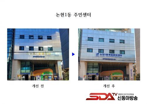 ÀÌ °èȹ¿¡ µû¶ó ³ëÈÄ °£ÆÇ 59°³¸¦ ±³Ã¼Çϰí, û»ç ¿Üº®¿¡ °£ÆÇ 10°³¸¦ »õ·Ó°Ô ¼³Ä¡Çß´Ù. ƯÈ÷, µµ°î1µ¿°ú °³Æ÷2µ¿ Áֹμ¾ÅÍ¿¡´Â Áö¿ªÀÇ ¸Å·ÂÀ» ¹Ý¿µÇÑ ½½·Î°Ç °£ÆÇÀÌ ½Ã¹üÀûÀ¸·Î µµÀÔÇß´Ù. µµ°î1µ¿ÀÇ ¡®¿À´Ãµµ ³»Àϵµ Çູ¡¯, °³Æ÷2µ¿ÀÇ ¡®ÀÚ¿¬°ú ÇÔ²² ¾î¿ì·¯Áø ÇູÇÑ¡¯À̶ó´Â ¹®±¸´Â Áö¿ª Ư»ö°ú ¹®È¸¦ ´ã¾Æ Áֹε鿡°Ô µû¶æÇÔ°ú ¼Ò¼Ó°¨À» ÀüÇϸç, Áֹμ¾Å͸¦ Áö¿ª ´ëÇ¥ °ø°£À¸·Î ÀνÄÇÏ°Ô ÇÏ´Â µ¥ ±â¿©Çϰí ÀÖ´Ù.