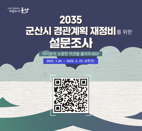 Á¶»ç ±â°£Àº ±º»ê½Ã¹Î°ú ±º»ê½Ã °ÅÁÖ¹ÎÀ» ´ë»óÀ¸·Î ¿À´Â 1¿ù 20ÀϺÎÅÍ 2¿ù 23ÀϱîÁöÀ̸ç, Âü¿© ¹æ¹ýÀº ±º»ê½Ã ´©¸®Áý ÆË¾÷ ¹è³Ê¸¦ ÅëÇØ ¿¬µ¿µÈ ¼³¹®Á¶»ç¿¡ ÀÀÇÏ¸é µÈ´Ù.