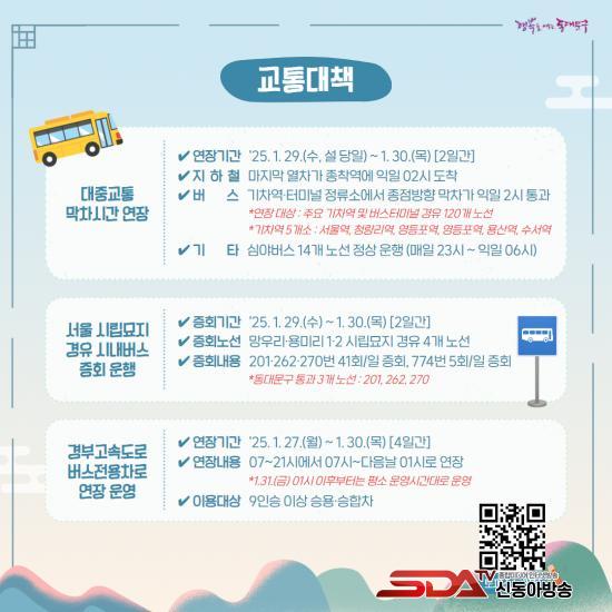 ¿¬ÈÞ ±â°£ ±³Åë È¥ÀâÀ» ÃÖ¼ÒÈ­Çϱâ À§ÇØ ±Í¼º¡¤±Í°æ°´µéÀÌ ¸¹ÀÌ ÀÌ¿ëÇϴ û·®¸®¿ª°ú ÀüÅë½ÃÀå ÁÖº¯À» Áß½ÉÀ¸·Î ºÒ¹ý ÁÖ¡¤Á¤Â÷, ½É¾ß ºÒ¹ý ¿µ¾÷ Åýà µîÀ» ´Ü¼ÓÇÏ¿© ¿øÈ°ÇÑ ±³ÅëÁú¼­ È®¸³¿¡ ÃÖ¼±À» ´ÙÇÒ ¿¹Á¤ÀÌ´Ù.