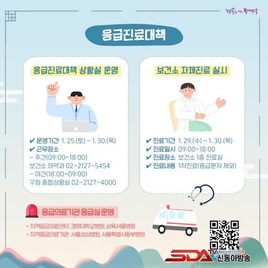 ÀÇ·á°ø¹é µîÀ¸·Î ÀÎÇÑ ±¸¹Î ÇÇÇØ¸¦ ÃÖ¼ÒÈ­Çϱâ À§ÇØ 29ÀÏ, 30ÀÏ ¾çÀÏ 9½ÃºÎÅÍ 18½Ã±îÁö µ¿´ë¹®±¸ º¸°Ç¼Ò ÀÚü Áø·á¸¦ ½Ç½ÃÇÑ´Ù. ¶ÇÇÑ ±¸¹ÎµéÀÇ Áø·á¿Í ÀǾàǰ ±¸ÀÔ¿¡ Â÷ÁúÀÌ ¾øµµ·Ï ÀÀ±ÞÁø·á´ëÃ¥ »óȲ½ÇÀ» ¿î¿µÇÏ¿© ¿¬ÈޱⰣ ¹® ¿©´Â º´¡¤ÀÇ¿ø°ú ¾à±¹À» ¾È³»Çϰí ÀÀ±ÞÀÇ·á»ç°í °ü·Ã ¹Î¿ø ½Å°í»çÇ×À» ó¸®ÇÒ ¿¹Á¤ÀÌ´Ù.