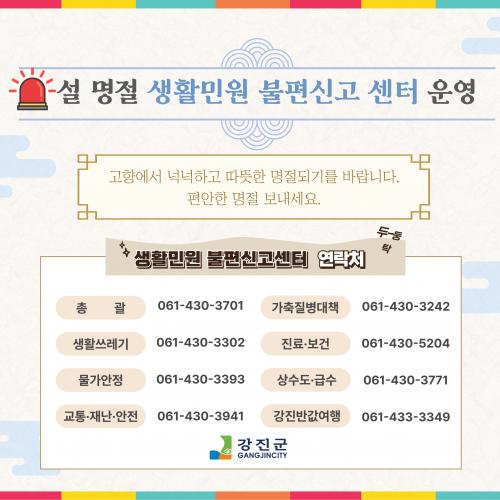 °Áø±ºÀº ¿¬ÈޱⰣÀÎ ¿À´Â 25ÀϺÎÅÍ 30ÀϱîÁö º»Ã», »ç¾÷¼Ò, À¾¡¤¸é¿¡¼ ÃÑ 7°³¹ÝÀ¸·Î Á¾ÇÕ´ëÃ¥¹ÝÀ» ±¸¼ºÇÏ°í »ýȰ¹Î¿ø ºÒÆí½Å°í¼¾Å͸¦ ¿î¿µÇÑ´Ù.