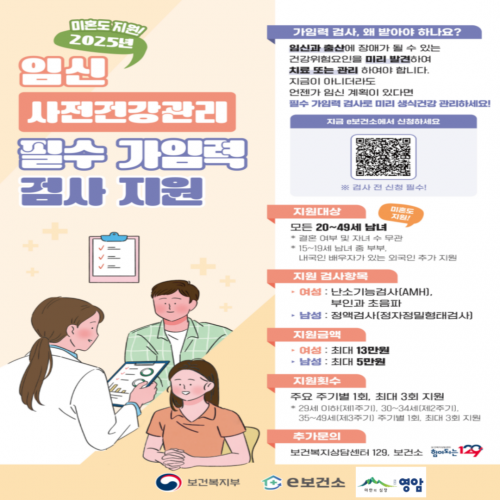 ¿©¼º¿¡°Ô´Â ³¼Ò±â´É°Ë»ç, ºÎÀΰú ÃÊÀ½ÆÄ 2Á¾ °Ë»çºñ¸¦ 1ȸ´ç 13¸¸¿ø±îÁö, ³²¼º¿¡°Ô´Â Á¤¾×°Ë»çºñ¸¦ 1ȸ´ç 5¸¸¿ø±îÁö Áö¿øÇÑ´Ù.
