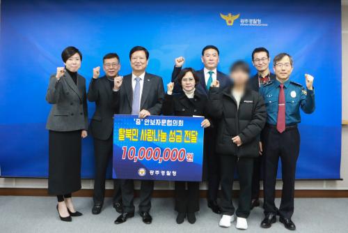 À̳¯ ±¤ÁÖ°æÂûû ¾Èº¸ÀÚ¹®ÇùÀÇȸ´Â °íÇâ¿¡ ´ëÇÑ ±×¸®¿ò°ú °æÁ¦Àû ¾î·Á¿òÀ» °Þ°í ÀÖ´Â Å»ºÏ¹ÎÀ» À§·ÎÇϰí ŸÁö¿¡¼ ¸íÀýÀ» ¸Â´Â Å»ºÏ¹ÎµéÀÌ ÇູÇÑ ¼³³¯ ¸íÀýÀ» º¸³¾ ¼ö ÀÖµµ·Ï µû¶æÇÑ °Ý·Á¿Í ÇÔ²² ¼º±ÝÀ» Áö¿øÇß´Ù.