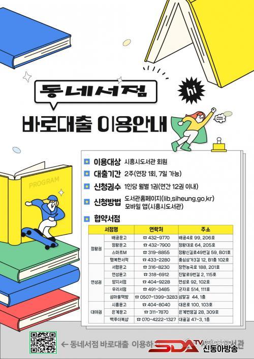 ¿ÃÇØºÎÅÍ´Â Àå°îµ¿¿¡ ÀÖ´Â ¡®¼¶¸¶À»Ã¥¹æ(½ÃÈï½Ã ¼¶¸»±æ 44)¡¯ÀÌ »õ·Î¿î Çù¾à ¼Á¡À¸·Î Ãß°¡µÅ ÃÑ 12°³ÀÇ Çù¾à ¼Á¡ÀÌ ¿î¿µµÇ°í ÀÖ´Ù. ¸¸¾à °ÅÁÖÁö Àαٿ¡ Çù¾àµÈ µ¿³×¼Á¡ÀÌ ¾ø´Â °æ¿ì¿¡´Â Èñ¸Áµµ¼ ½Åû Á¦µµ¸¦ ÅëÇØ µµ¼¸¦ ´ëÃâÇÒ ¼ö ÀÖ´Ù. ¼ºñ½º À̿뿡 °üÇÑ ÀÚ¼¼ÇÑ Á¤º¸´Â ½ÃÈï½Ãµµ¼°ü ´©¸®Áý¿¡¼ È®ÀÎÇÒ ¼ö ÀÖ´Ù.