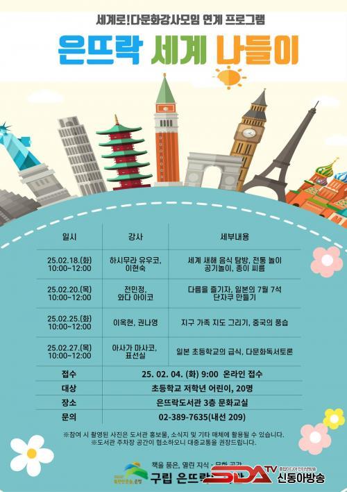 [½Åµ¿¾Æ¹æ¼Û ÀºÆò±¸=À̽ŵ¿±âÀÚ] ÀºÆò±¸´Â ±¸¸³ Àº¶ß¶ôµµ¼­°ü¿¡¼­ ´Ù¹®È­ üÇèÇÁ·Î±×·¥ ¡®Àº¶ß¶ô ¼¼°è ³ªµéÀÌ¡¯¸¦ ³»´Þ 18ÀϺÎÅÍ 27ÀϱîÁö ÃÑ 4ȸ ¿î¿µÇÑ´Ù°í ¹àÇû´Ù.