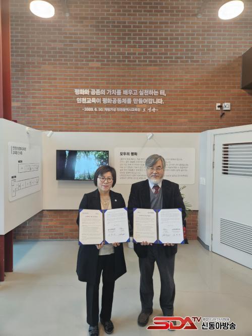 [½Åµ¿¾Æ¹æ¼Û = À±¹Î½Ä±âÀÚ] ÀÎõ±¤¿ª½Ã±³À°Ã»³­Á¤ÆòÈ­±³À°¿ø(¿øÀå ±è¸í¼ø)Àº Áö³­ 22ÀÏ ºñÆø·ÂÆòÈ­¹°°á(´ëÇ¥ ¹Ú¼º¿ë)°ú ÆòÈ­±³À° Çù·Âü°è ±¸ÃàÀ» À§ÇÑ ¾÷¹«Çù¾à(MOU)À» ü°áÇß´Ù.
