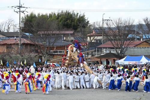 ¸¶Áö¸· ³¯¿¡´Â ¿ÀÀü 11½ÃºÎÅÍ °ü¶÷°´ÀÇ ½Ã¼±À» ºÙÀâ´Â ¸¶´ç±Â°ú ³²µµ¹ÎÀÇ ÁøÃëÀû ±â»óÀ» ¸¸³£ÇÒ ¼ö ÀÖ´Â °í½Î¿ò³îÀÌ ½Ã¿¬ µî ´Ùä·Î¿î ¹«´ë¸¦ ¼±º¸À̸ç, ¿ÀÈÄ¿¡´Â °ü¶÷°´ ¸ðµÎ°¡ Âü¿©ÇÏ´Â ´ëµ¿ Áٴٸ®±â¸¦ ³¡À¸·Î ÃàÁ¦ÀÇ ¸·À» ³»¸°´Ù.