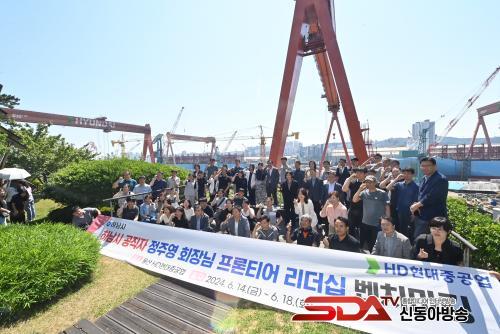 ÀÌÇöÀç Çϳ²½ÃÀå°ú Çϳ²½Ãû °øÁ÷ÀÚµéÀÌ Áö³­ÇØ 6¿ù °í Á¤ÁÖ¿µ Çö´ë±×·ì ¸í¿¹È¸ÀåÀÇ ¡®ÇÁ·ÐƼ¾î ¸®´õ½Ê¡¯À» º¥Ä¡¸¶Å·Çϱâ À§ÇØ ¿ï»ê HDÇö´ëÁß°ø¾÷À» ¹æ¹®ÇØ ±â³äÃÔ¿µÀ» Çϰí ÀÖ´Ù.
