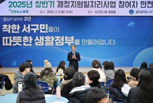 [½Åµ¿¾Æ¹æ¼Û=ÀÌÁöÇö±âÀÚ] ±¤ÁÖ±¤¿ª½Ã ¼­±¸(±¸Ã»Àå ±èÀ̰­)´Â 3ÀÏ ¼­±¸Ã» µéºÒȦ¿¡¼­ ¡®2025³â »ó¹Ý±â ÀçÁ¤Áö¿øÀÏÀÚ¸®»ç¾÷¡¯ Âü¿©ÀÚ¸¦ ´ë»óÀ¸·Î »ê¾÷ÀçÇØ ¿¹¹æ°ú ¼ºÆòµî ÀÇ½Ä Çâ»óÀ» À§ÇÑ ¾ÈÀü±³À°À» ½Ç½ÃÇß´Ù.