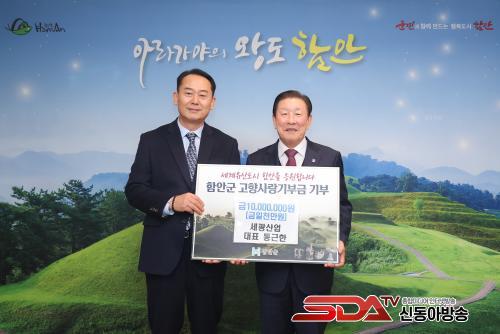 ¼¼±¤»ê¾÷ ´ëÇ¥, ÇԾȱº °íÇâ»ç¶û±âºÎÁ¦ µ¿Âü °íÇâ»ç¶û±âºÎ±Ý 1000¸¸ ¿ø ±âŹ