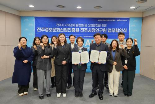 ÀüÁÖÁ¤º¸¹®È»ê¾÷ÁøÈï¿ø(ÀÌÇÏ ÁøÈï¿ø)°ú ÀüÁÖ½ÃÁ¤¿¬±¸¿ø(ÀÌÇÏ ¿¬±¸¿ø)Àº 5ÀÏ ÁøÈï¿ø ¼¼¹Ì³ª½Ç¿¡¼ ÇãÀü ¿øÀå°ú ¹Ú¹ÌÀÚ ¿øÀå µî ¾ç ±â°ü °ü°èÀÚµéÀÌ Âü¼®ÇÑ °¡¿îµ¥ ¡®Áö¿ª°æÁ¦ Ȱ¼ºÈ ¹× Áö¿ª»ê¾÷ ¹ßÀüÀ» À§ÇÑ ¾÷¹«Çù¾à(MOU)¡¯À» ü°áÇß´Ù.