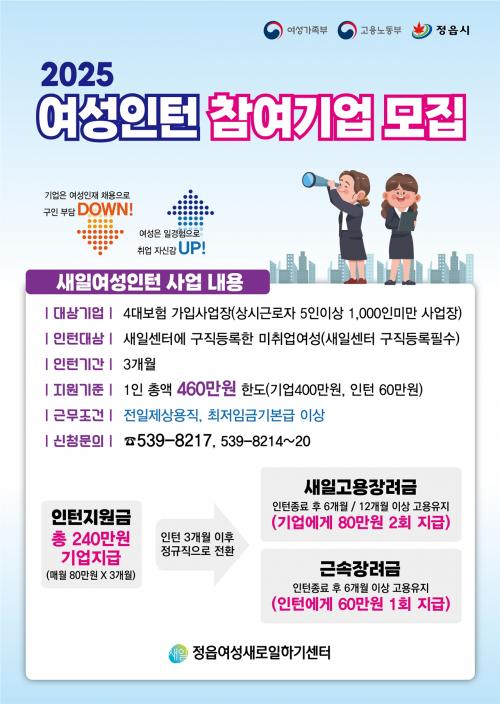 ¿©¼º°¡Á·ºÎ¿¡¼ Áö¿øÇÏ´Â »õÀÏ¿©¼ºÀÎÅÏ»ç¾÷Àº °æ·Â´ÜÀý¿©¼º µîÀÌ Á÷Àå¿¡ ÀûÀÀÇÒ ¼ö ÀÖµµ·Ï ÀÏ °æÇè ±âȸ¸¦ Á¦°øÇϰí Á÷ÀåüÇè°ú Á÷¹« ±â¼ú ½ÀµæÀÇ ±âȸ¸¦ ÅëÇØ ÀÏ¹Ý ³ëµ¿½ÃÀåÀ¸·ÎÀÇ ÁøÀÔ °¡´É¼ºÀ» ³ô¿© Ãë¾÷ ÈÄ ¾ÈÁ¤ÀûÀÎ °í¿ë À¯Áö±îÁö Áö¿øÇÏ´Â »ç¾÷ÀÌ´Ù.