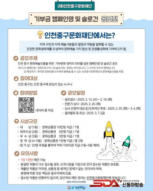 °ø¸ð ±â°£Àº 2¿ù 12ÀϺÎÅÍ 18ÀϱîÁöÀ̸ç ÀÎõ Áß±¸¹Î ¶Ç´Â ÀÎõ Áß±¸ÀÇ ¹®È­¿¹¼ú¿¡ °ü½É ÀÖ´Â ´©±¸³ª Âü¿©ÇÒ ¼ö ÀÖ´Ù. Âü¿© Èñ¸ÁÀÚ´Â Àü¿ë À¥ÆäÀÌÁö(³×À̹ö Æû)¸¦ ÅëÇØ Ä·ÆäÀÎ¸í ¹× ½½·Î°Ç, Á¦¾È ÃëÁö µîÀ» ÀÛ¼ºÇØ Á¦ÃâÇÏ¸é µÈ´Ù.