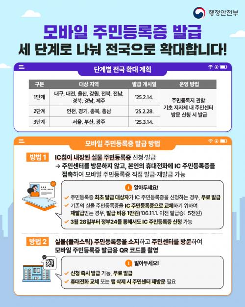 ¸ð¹ÙÀÏ Áֹεî·ÏÁõÀ» ½Ã°£°ú Àå¼Ò¿¡ ±¸¾Ö¹ÞÁö ¾Ê°í ½Ã¹Î ½º½º·Î ¹ß±ÞÇÏ¿© »ç¿ëÇÏ·Á¸é, IC Áֹεî·ÏÁõÀ» ¹ß±Þ¹ÞÀ¸¸é µÈ´Ù. ¹Î¿øÀÎÀÌ Á÷Á¢ ¸ð¹ÙÀÏ Áֹεî·ÏÁõÀ» ¹ß±ÞÇÒ ¼ö ÀÖ´Â ICĨÀÌ ³»ÀåµÈ Áֹεî·ÏÁõÀº ½Åû ÈÄ ¹ß±Þ±îÁö ¾à 3ÁÖ°¡ ¼Ò¿äµÇ¸ç, IC Áֹεî·ÏÁõ ¼ö·É ½Ã¿¡´Â ÁöÁ¤ À¾¸éµ¿ ÇàÁ¤º¹Áö¼¾Å͸¦ Á÷Á¢ ¹æ¹®ÇÏ¿© ¼ö·ÉÇÏ¿©¾ß ÇÑ´Ù.