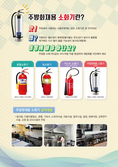 µû¶ó¼­, È­Àç ½Ã ±â¸§¸·À» Çü¼ºÇØ ½Ä¿ëÀ¯ÀÇ ¿Âµµ¸¦ ³·Ãß°í »ê¼Ò°ø±ÞÀ» Â÷´ÜÇØ ÁÖ¸ç ÁÖ¹æ È­Àç¿¡ È¿°úÀûÀ¸·Î ´ëÀÀÇÒ ¼ö ÀÖ´Â ÁÖ¹æ¿ë(K±Þ) ¼ÒÈ­±â¸¦ »ç¿ëÇØ¾ß ÇÑ´Ù.