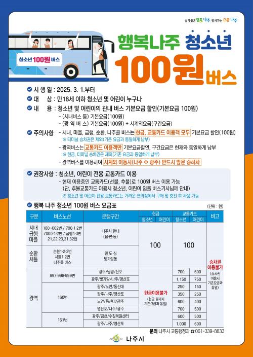 ³ªÁÖ½Ã, 3¿ùºÎÅÍ ¾î¸°ÀÌ¡¤Ã»¼Ò³â 100¿øÀ¸·Î ¹ö½º ź´Ù
