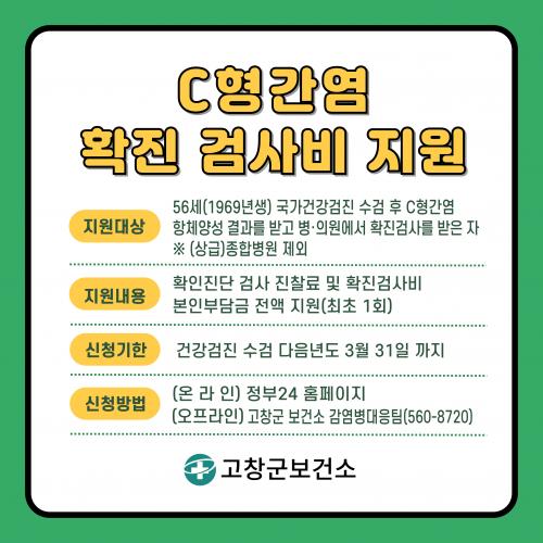 Áö¿ø ´ë»óÀº 56¼¼(1969³â»ý) ±¹°¡°Ç°­°ËÁø ¼ö°Ë ÈÄ CÇü°£¿° Ç×ü ¾ç¼º ÆÇÁ¤À» ¹Þ°í º´‧ÀÇ¿ø¿¡¼­((»ó±Þ)Á¾ÇÕº´¿ø Á¦¿Ü) È®Áø °Ë»ç¸¦ ¹ÞÀº ±º¹ÎµéÀÌ´Ù.