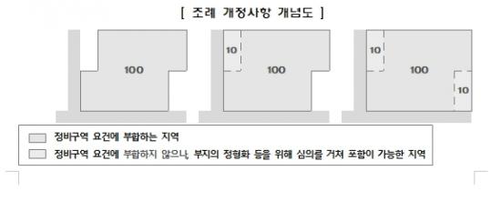 º»È¸ÀǸ¦ Åë°úÇÑ À̹ø Á¶·Ê¾ÈÀº µµ½Ã ¹× ÁÖ°Åȯ°æÁ¤ºñ¹ý·É¿¡ µû¶ó ¡®Á¤ºñ±¸¿ª ÀԾȴë»óÁö¿ª ¸éÀûÀÇ 100ºÐÀÇ 120ÀÌÇÏ ¹üÀ§(110%¿¡¼ 120%·Î È®Àå)¡¯¿¡¼ Á¤ºñ°èȹ ÀÔ¾È ¿ä°Ç¿¡ ÇØ´çÇÏÁö ¾Ê´Â ÀϺΠÁö¿ªÀ» Æ÷ÇÔÇØ Á¤ºñ°èȹÀ» ÀÔ¾ÈÇÒ ¼ö ÀÖµµ·Ï ÇÊ¿äÇÑ »çÇ×À» ±ÔÁ¤Çß´Ù.