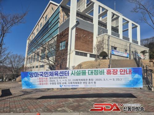 ÇÑÆí, ¸Á¸¶±¹¹ÎüÀ°¼¾ÅÍ ¼ö¿µÀåÀº Á¤ºñ ¿Ï·á ÈÄ 6¿ù 2ÀϺÎÅÍ Á¤»ó ¿î¿µµÉ ¿¹Á¤ÀÌ´Ù. ÈÞÀå ±â°£ ¹× ´Ù¸ñÀû üÀ°°ü ¿î¿µ µî °ü·Ã ¹®ÀÇ´Â ¸Á¸¶±¹¹ÎüÀ°¼¾ÅÍ °ü¸®»ç¹«½Ç(¢Ï 061-684-8225)·Î ÇÏ¸é µÈ´Ù.