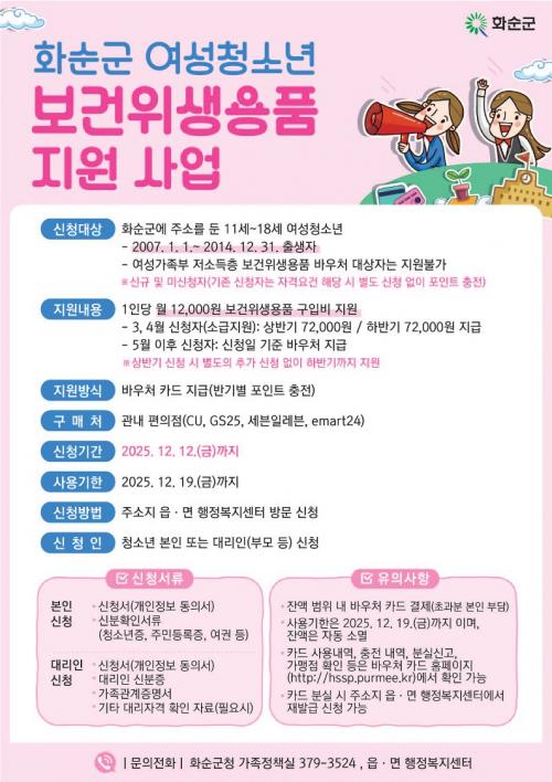 Áö¿ø ´ë»óÀº ȼø±º¿¡ ÁÖ¼Ò¸¦ µÐ 11¼¼~18¼¼(2007³â~2014³â Ãâ»ý) ¿©¼º û¼Ò³âÀÌ´Ù. ½Åû ´ë»óÀº ÇØ´ç ³ªÀÌ¿¡ µµ´ÞÇÑ ½Å±ÔÀÚ ¹× ±×°£ ¹Ì½ÅûÀÚ¿¡ ÇÑÇÑ´Ù.