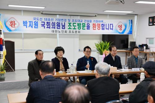 Á¶µµ¸é ³ëÀÎȸ »ç¹«½Ç¿¡¼ ÁøÇàµÈ À̳¯ °£´ãȸ¿¡´Â ¹ÚÁö¿ø ±¹È¸ÀÇ¿ø, ±èÈñ¼ö Áøµµ±º¼ö, ¹Ú±Ý·Ê Áøµµ±ºÀÇȸÀÇÀå, ±èÀÎÁ¤ µµÀÇ¿ø, ÁÖ¸¸Á¾ ±ºÀÇ¿ø°ú Á¶µµ¸é ³ëÀÎȸ, ½ÅÁ¶µµ´ë±³ °Ç¼³ÃßÁøÀ§¿øÈ¸, Åê»ý»êÀÚ ÇùÀÇȸ, Á¶µµ¸é ±â°ü»çȸ´ÜüÀå µîÀÌ Âü¼®Çß´Ù.