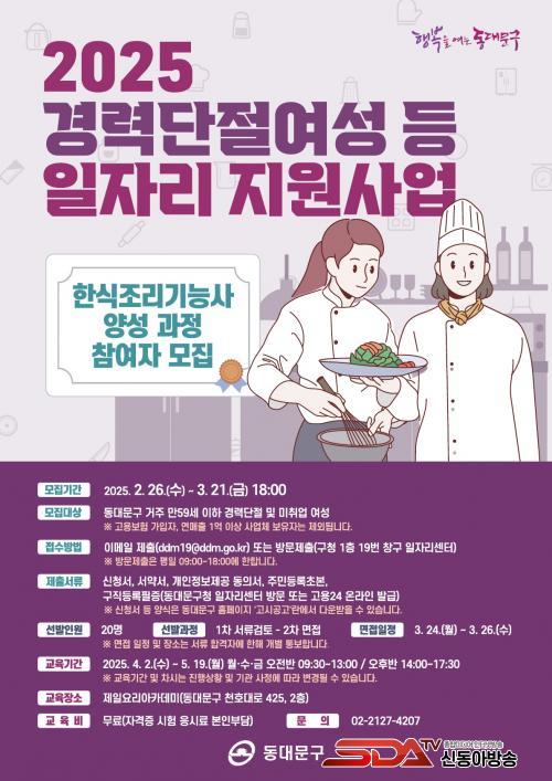[½Åµ¿¾Æ¹æ¼Û µ¿´ë¹®±¸=À̽ŵ¿±âÀÚ] ¼­¿ï µ¿´ë¹®±¸´Â °æ·Â ´ÜÀý ¹× ¹ÌÃë¾÷ ¿©¼ºÀ» ´ë»óÀ¸·Î ÇѽÄÁ¶¸®±â´É»ç ¾ç¼º °úÁ¤ ±³À°»ýÀ» ¸ðÁýÇÑ´Ù.