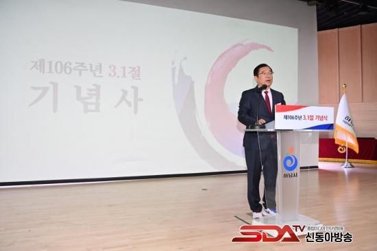ÀÌÇöÀç ½ÃÀåÀº ±â³ä»ç¿¡¼ ¡°Çϳ²½Ã´Â 3.1¿îµ¿ÀÇ ¶ß°Å¿î ¿±â°¡ ±êµç ¿ª»çÀÇ µµ½Ã·Î, µ¶¸³À¯°øÀÚ ´Ù¼¸ ºÐÀÌ Ãß¼µÉ ¸¸Å ÀÚ¶û½º·¯¿î µ¶¸³¿îµ¿ÀÇ ¹ßÀÚÃ븦 Áö´Ñ °÷¡±À̶ó°í °Á¶Çϸç, ¡°ÀÏÁ¦ÀÇ ¾ÐÁ¦¿¡ ±¼ÇÏÁö ¾Ê°í ´ëÇѵ¶¸³ ¸¸¼¼¸¦ ¿ÜÄ£ ¼ø±¹¼±¿°ú ¾Ö±¹Áö»çµé, ±×¸®°í ±×µéÀÇ À¯°¡Á·¿¡°Ô ±íÀº °¨»ç¿Í °æÀǸ¦ Ç¥ÇÑ´Ù¡±°í ¸»Çß´Ù.