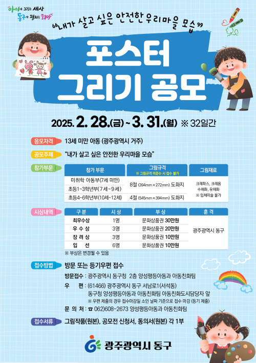 ¿ÃÇØ·Î 4ȸ°¸¦ ¸ÂÀÌÇÏ´Â À̹ø °ø¸ðÀüÀº ±×¸²À» ÅëÇØ ¾Æµ¿ÀÌ ¹Ù¶ó´Â ¸¶À»ÀÇ ¸ð½À Ç¥Çö°ú ¾Æµ¿ ±Ç¸®¿¡ °ü½ÉÀ» °®°í Âü¿©ÇÒ ¼ö ÀÖ´Â ±âȸ¸¦ Á¦°øÇϱâ À§ÇØ ±âȹµÆ´Ù.