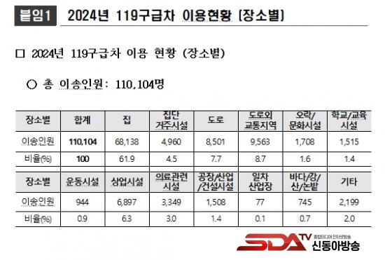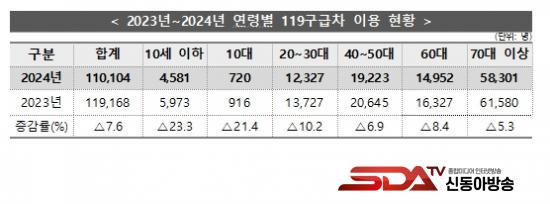 [½Åµ¿¾Æ¹æ¼Û ÀÎõ= À±¹Î½Ä±âÀÚ] ÀÎõ¼Ò¹æº»ºÎ´Â 2024³âµµ 119±¸±ÞÂ÷ ÀÌ¿ë ÇöȲÀ» ºÐ¼®ÇÑ °á°ú, ÀÎõ½Ã¹Î 110,104¸íÀÌ 119±¸±ÞÂ÷¸¦ ÀÌ¿ëÇÏ¿´´Ù°í ¹àÇû´Ù.