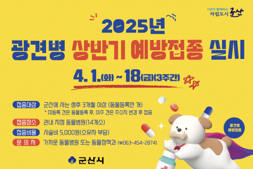 Á¢Á¾Àº 4¿ù 1ÀϺÎÅÍ 18ÀϱîÁö 3ÁÖ°£ Áö¿ª ³» µ¿¹°º´¿ø 14°³¼Ò¿¡¼ ½ÃÇàÇϸç,