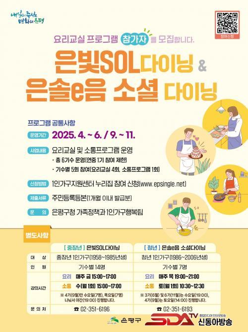 ¡®ÀººûSOL´ÙÀ̴ס¯Àº ±â¼öº° 14¸í ¸ðÁýÇÏ°í ¡®Àº¼ÖeÀ½ ¼Ò¼È´ÙÀ̴ס¯Àº ±â¼öº° 7¸í ¸ðÁýÇÑ´Ù. Âü¿© Èñ¸ÁÀÚ´Â ÀºÆò±¸ 1Àΰ¡±¸Áö¿ø¼¾ÅÍ ´©¸®ÁýÀ» ÅëÇØ ½ÅûÇÏ¸é µÈ´Ù. ¿¬Áß 1±â¼ö¿¡ Âü¿© Á¦ÇÑÀÌ ÀÖ¾î Áߺ¹ ½ÅûÀº ¾È µÈ´Ù.