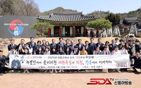 [½Åµ¿¾Æ¹æ¼Û Àü³²ÀåÈï=À̽ŵ¿±âÀÚ] Àü¶ó³²µµÀåÈï±³À°Áö¿øÃ»Àº ¾ÈÁß±Ù ÀÇ»ç ¼ø±¹ 115Áֱ⸦ ¸Â¾Æ ÀåÈï ÇØµ¿»ç¿¡¼­ ¿­¸° Ã߸ðÁ¦¿¡ Âü¼®ÇÏ¿© µ¶¸³ Á¤½ÅÀ» ±â¸®´Â ¶æ±íÀº ½Ã°£À» °¡Á³´Ù. À̹ø Çà»ç´Â ÀåÈﱺû ÁÖ°üÀ¸·Î ÁøÇàµÇ¾úÀ¸¸ç, ÀåÈïÁö¿ª 4°³ ÁßÇб³ 2Çгâ Çлý ¹× ±³Á÷¿ø µî ±³À°°¡Á· 200¿© ¸íÀÌ Âü¿©Çß´Ù.